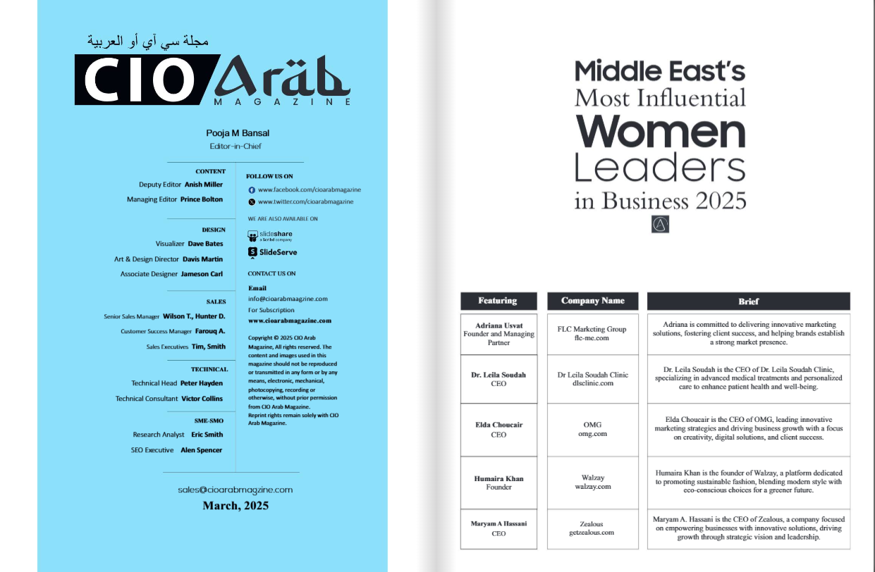 - CIO Arab Magazine Dr Leila Soudah: Middle East Most Influential Women Leaders in Business 2025. https://magazine.cioarabmagazine.com/2025/middle-easts-most-influential-women-leaders-in-business-2025-march-2025/#page=1